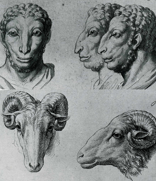 Voici quelques uns des nombreux dessins illustrant les conférences de Charles LeBrun à l'Académie, sur la relation entre l'homme et l'animal.