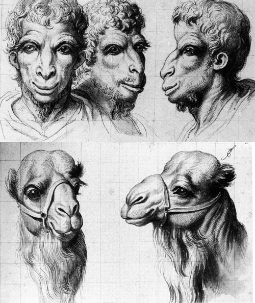 Voici quelques uns des nombreux dessins illustrant les conférences de Charles LeBrun à l'Académie, sur la relation entre l'homme et l'animal.